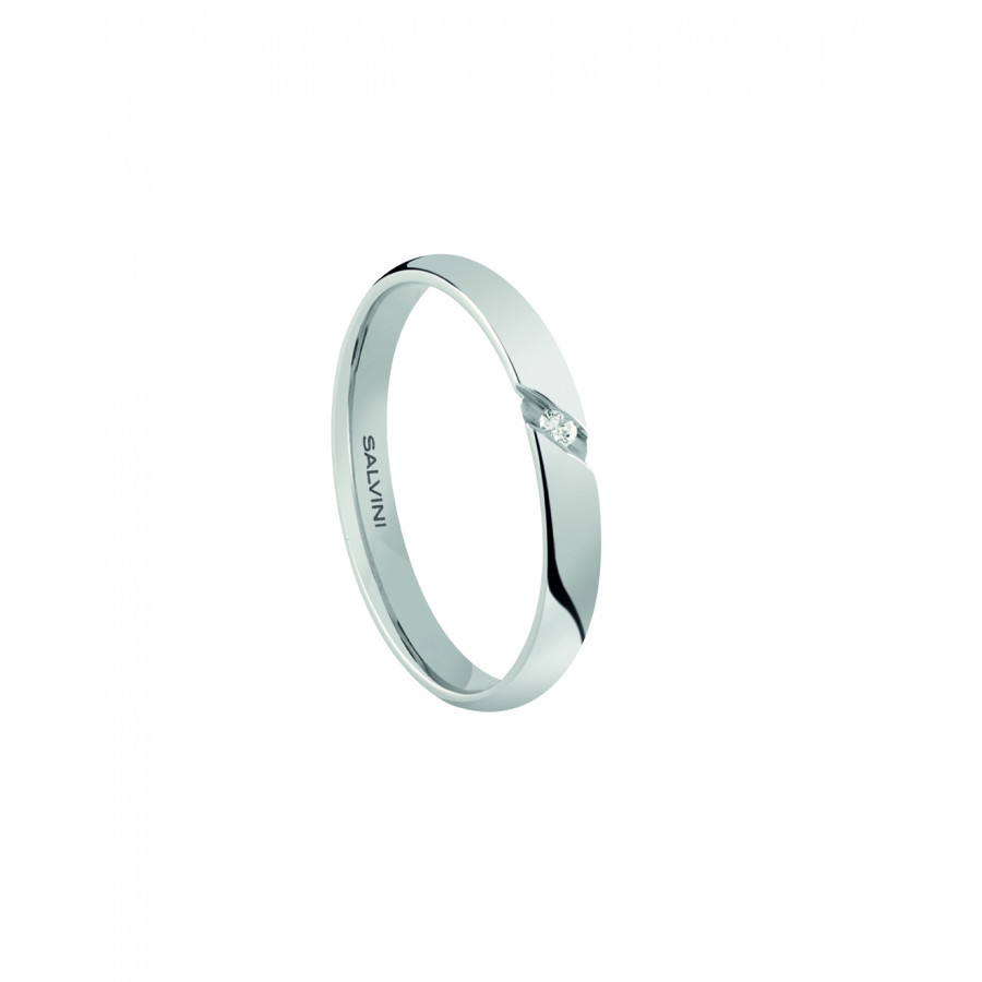 Fede nuziale in oro bianco e diamante, della collezione Special Day di Salvini.