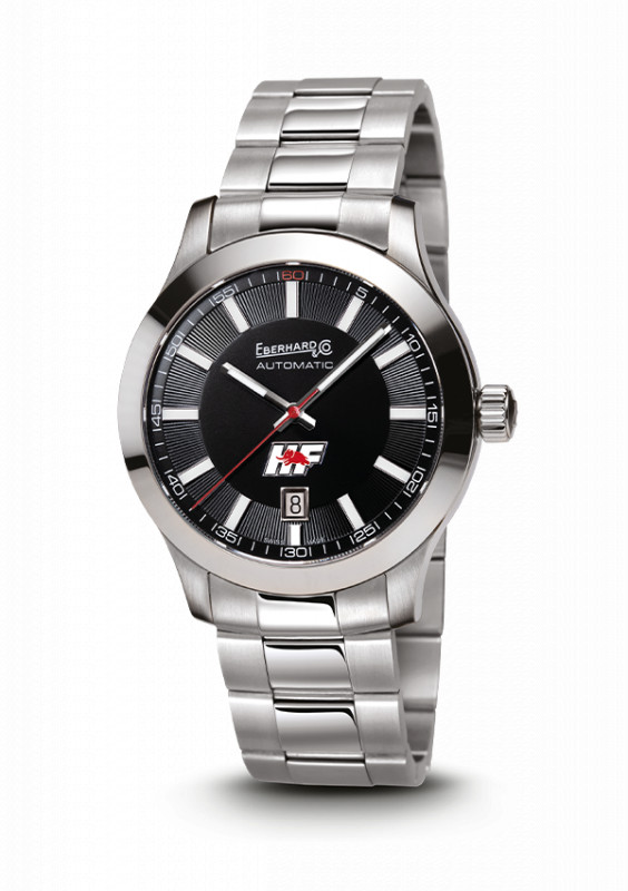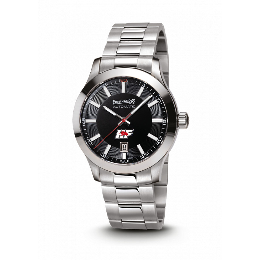 Orologio Eberhard & Co. meccanico a carica automatica della collezione Lancia HF Limited Edition quadrante nero e cinturino braccialato in acciaio. 120 esemplari.