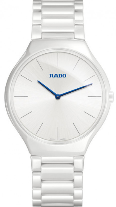 Il True Thinline potrebbe essere considerato l'ultimo segnatempo Rado. Introdotti per la prima volta nella collezione nel 2011, questi orologi al quarzo sono i più sottili di Rado, i primi a presentare l'innovativa cassa monoblocco e sono presentati interamente in ceramica high-tech. Con leggerezza, resistenza ai graffi e comfort garantito, sono progettati per resistere alla prova del tempo.