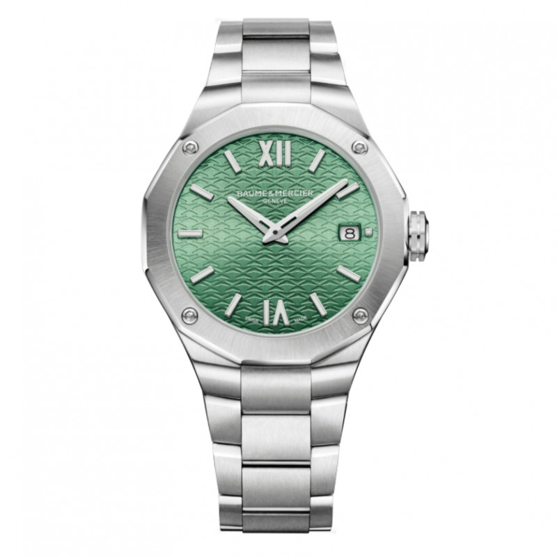 Animato da un movimento al quarzo “Swiss Made”, questo Riviera è ornato da un quadrante verde chiaro e accompagnato da un bracciale in acciaio che gli conferisce un look luminoso. Un segnatempo di carattere per una personalità decisa.