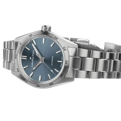 Pensata per chi ama l’equilibrio tra stile e funzionalità, la linea Jazzmaster Performer offre un look sporty-chic accattivante. Animato dal movimento automatico H-10 con riserva di carica fino a 80 ore, questo Jazzmaster Performer Automatic presenta una cassa in acciaio da 34 mm messa in risalto da un sobrio quadrante blu chiaro e un raffinato bracciale in acciaio.
