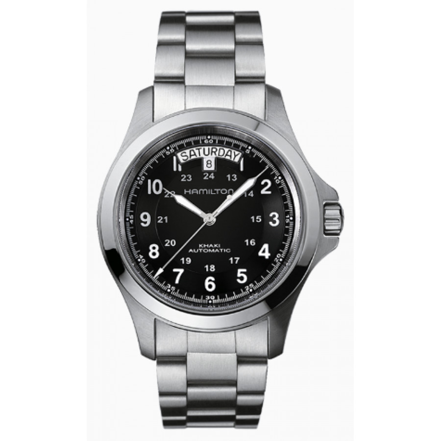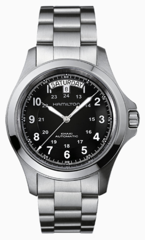 La tradizione militare Hamilton si rintraccia sul quadrante di questo splendido segnatempo Khaki Field King Auto con protezioni appositamente progettate per garantire la sicurezza della corona in ogni momento. Lunga vita al re.