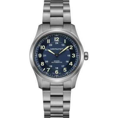 Caratterizzato da una cassa in titanio e bracciale, il Khaki Field Titanium 38 mm è un orologio altamente versatile, perfetto per essere indossato in ogni occasione. Il quadrante blu dall’ottima leggibilità ti permette di tenere i tempi di tutte le tue avventure, mentre il bracciale presenta una finitura spazzolata che aggiunge robustezza e carattere al design militare. Abbinando leggerezza e funzionalità allo stile militare, il Khaki Field Titanium è il tuo fedele alleato nella ricerca di nuove esperienze.