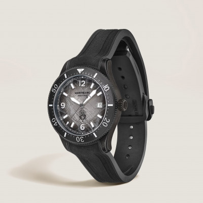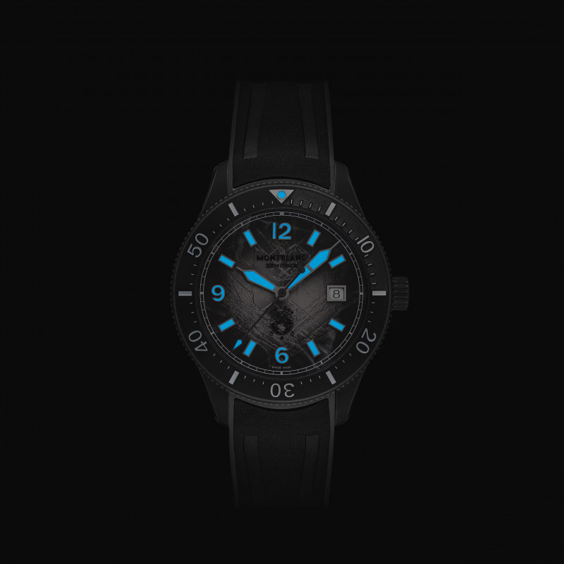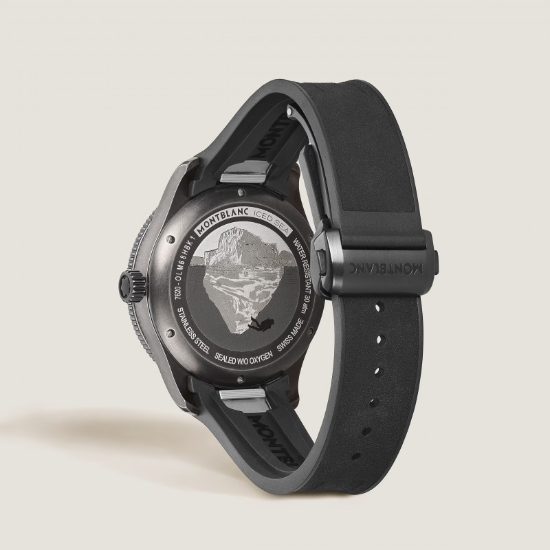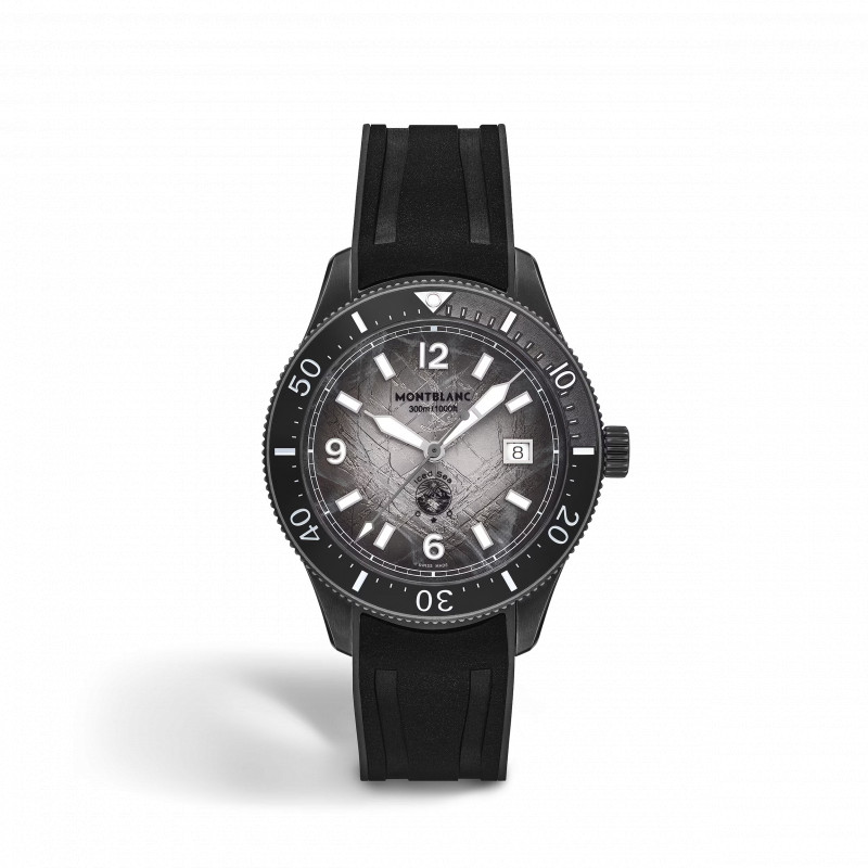 Il Montblanc Iced Sea Automatic Date 0 Oxygen con quadrante grigio scuro Sfumato con motivo “ghiacciaio” dà l’impressione di guardare nelle profondità di un ghiacciaio. Ispirata al Mer de Glace, questa texture glaciale è stata ottenuta utilizzando una tecnica ancestrale quasi dimenticata chiamata gratté-boisé. Il segnatempo è custodito in una cassa da 41 mm in acciaio pregiato anticato totalmente priva di ossigeno con lunetta girevole unidirezionale con inserto in ceramica nera abbassato al laser da 0 a 15 minuti, un’incisione 3D sul fondello e un cinturino intercambiabile in caucciù nero con regolazioni raffinate. Il segnatempo è conforme alla norma ISO 6425 relativa alle immersioni subacquee e offre un’impermeabilità fino a 300 metri.