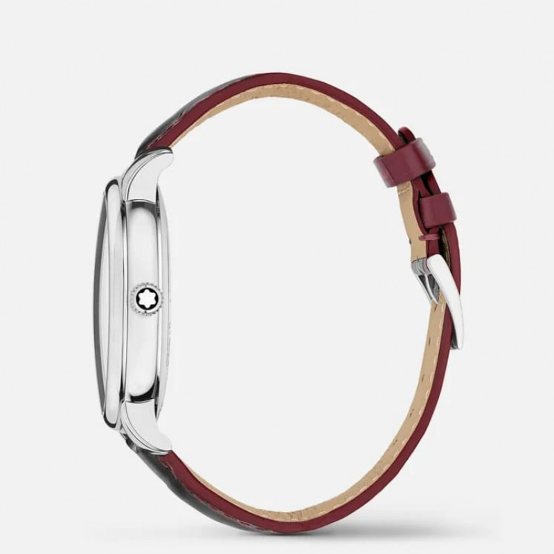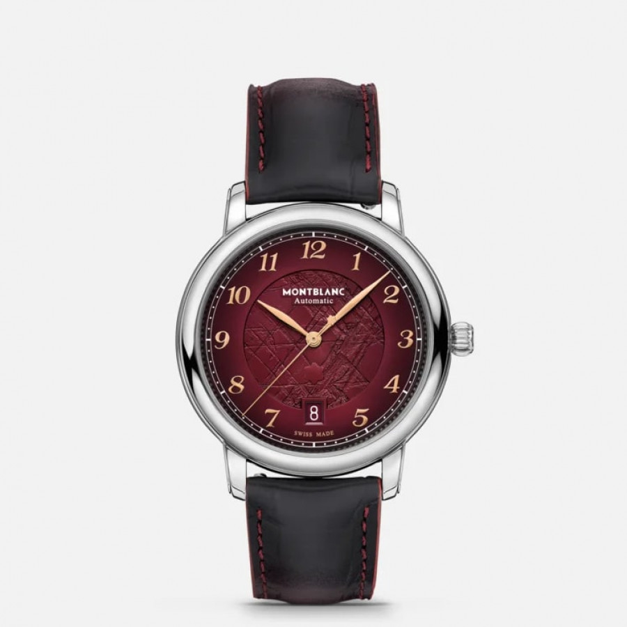 Il Montblanc Star Legacy Automatic Date in edizione limitata di 1786 esemplari rende omaggio all’intrepido Jacques Balmat, il primo uomo a raggiungere la cima del Monte Bianco nel 1786. Il segnatempo presenta un quadrante con motivo “ghiacciaio” bordeaux con effetto sfumato sull’esterno del quadrante e “filet sauté”, indici e numeri finitura oro rosa ed emblema Montblanc sul contrappeso della lancetta dei secondi. Il modello è alimentato dal movimento automatico MB 24.17 che indica ore, minuti, secondi e data. Il segnatempo è racchiuso in una cassa in acciaio pregiato da 39 mm con fondello aperto sul movimento ed è dotato di un cinturino intercambiabile in pelle di vitello con uno con stampa alligatore e Sfumato verticale.