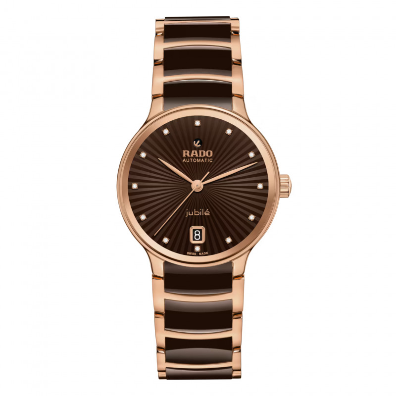 Il classico Rado Centrix Automatic Diamonds è stato rielaborato non solo tecnicamente, ma anche esteticamente. Il nuovo modello dispone di un cristallo zaffiro arrotondato che si estende fino al bordo e di una cassa ricurva che si integra con l’estremità del cristallo. Le anse della cassa ridisegnate e il bracciale in acciaio lucido rivestito in PVD color oro rosa con maglie centrali in ceramica hi-tech marrone completano l’estetica rinnovata di questo iconico segnatempo. Il quadrante marrone sfaccettato dispone di uno spettacolare effetto 3D realizzato tramite la stampa di un quadrante sagomato che viene poi riempito di lacca. All’interno, il calibro R763 a tre lancette supera gli standard di precisione nei test da 3 a 5 posizioni e grazie alla spirale antimagnetica Nivachron™ garantisce elevata affidabilità e puntualità. L’orologio è impermeabile fino a 50 m e offre una riserva di carica di 80 ore.