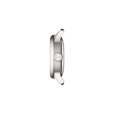 l Tissot Le Locle automatico racchiude tutta la tradizione e il know-how orologiero del marchio. Chiamato così in onore del luogo di nascita del marchio Tissot, nel Giura svizzero, questo segnatempo incarna l'eleganza senza tempo erede della tradizione orologiera. L'orologio presenta un movimento automatico di fabbricazione svizzera, un quadrante bianco, un vetro zaffiro antigraffio e una cassa in acciaio inossidabile. L'orologio ha un bracciale in acciaio inossidabile bicolore. scopri questa edizione, ventesimo anniversario. Viene fornito con un cinturino aggiuntivo in pelle blu.