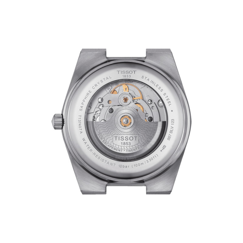 Questa estensione da 40 mm del PRX Powermatic 80 presenta un nuovo quadrante sfumato, che gioca con la luce e il colore per conferirgli un effetto sorprendente, offrendo una tavolozza di colori sorprendente che rompe la monotonia della vita di tutti i giorni. Ricordando il tramonto e l'alba, questi orologi sono perfetti per chi è in viaggio alla conquista del mondo. Questo modello di Tissot PRX è il compagno ideale per i professionisti urbani che cercano funzionalità ed eleganza. Unendo bellezza e qualità, il vetro zaffiro, noto per la sua eccezionale resistenza ai graffi e la sua durezza seconda solo al diamante, garantisce chiarezza e durata di lunga durata. Il movimento meccanico offre un'impressionante riserva di carica fino a 80 ore. Migliorando le prestazioni, la spirale Nivachron attenua le interferenze del campo magnetico e resiste agli urti, all'invecchiamento e ai cambiamenti di temperatura.