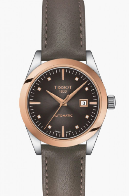 Il Tissot T-My Lady può essere considerata la controparte femminile del Tissot Gentleman, avendo in comune l'arte dell'orologeria di qualità che Tissot conferisce ai propri orologi. Il suo design elegante è arricchito da una lunetta in oro 18 carati, che dona carattere e calore all'orologio. l'introduzione del nuovo movimento automatico che offre fino a 48 ore di riserva di carica con spirale amagnetica Nivachron.