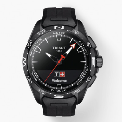 Discendente del primo orologio tattile multifunzione della storia, il T-Touch Connect Solar incarna la filosofia Tissot: Innovators by Tradition. Il T-Touch Connect Solar ha tutte le funzioni di un T-Touch Solar Expert: calendario perpetuo, conto alla rovescia, temporizzazione, allarmi, meteo e altimetro e aggiunge nuove funzioni come tracker di attività, messaggi o notifiche di chiamata. Le informazioni vengono visualizzate su uno schermo MIP con alta leggibilità all'aperto. L'autonomia del T-Touch Connect Solar è pressoché infinita in modalità disconnessa grazie alle celle fotovoltaiche di ultima generazione, In modalità connessa, può arrivare fino a 6 mesi. Il modello è disponibile in titanio satinato, titanio PVD nero o titanio PVD oro rosa.