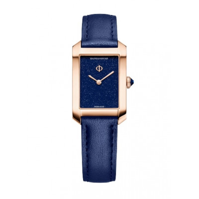 Degni eredi di questa vocazione, i due nuovi Hampton (10673 & 10674) si presentano con una cassa affusolata dalle proporzioni equilibrate (35 x 22,2 cm e 6,9 mm di spessore), realizzata in due versioni: una in acciaio inossidabile lucido e l’altra in oro rosa 18 carati (750/1000) e titanio lucido. Protetta da un vetro zaffiro bombato antigraffio, la cassa accoglie un movimento al quarzo di nuova generazione che indica ore e minuti, ed è dotato di un’autonomia di otto anni. I modelli rivelano inoltre un armonioso abbinamento di colori e materiali: per la cassa in acciaio è stato studiato un quadrante bordeaux, mentre per quella in oro un quadrante blu. Entrambi sono impreziositi da un rivestimento delicatamente paillettato che, ispirandosi alle pietre di avventurina e rubino stellato, crea un effetto scintillante in grado di esaltare la femminilità di questi raffinati segnatempo. La finitura del quadrante sublima la luce che attraversa la lunetta, ravvivandola e dandole rilievo. La ricerca di un design essenziale, firma dei modelli Baume & Mercier, si traduce nella presenza di due lancette a gladio e dell’elegante simbolo Phi, logo della Maison, applicato a ore 12.
