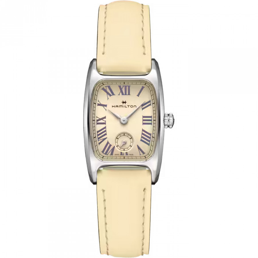 Caratterizzato da una cassa dall’elegante forma arrotondata e da un design Art Déco distintivo, l’Hamilton Boulton M è stato rivisitato con colori vivaci ispirati agli inconfondibili macaron. Il segnatempo vanta uno splendido quadrante beige vaniglia impreziosito da numeri romani color lavanda e da un cinturino in pelle coordinato per completare il look. Esplorando una palette di sorprendenti combinazioni di colori, l'Hamilton Boulton è un prezioso e accattivante compagno per il polso. Perfetto connubio di vecchio e nuovo, questo segnatempo irradia un fascino femminile al contempo moderno e senza tempo.