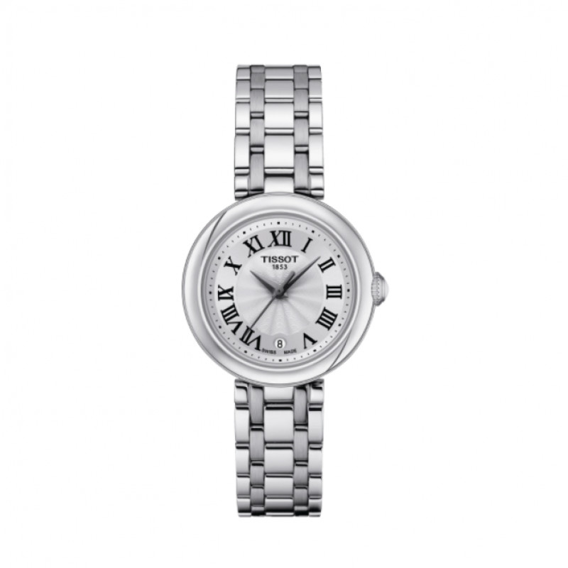 Il Tissot Bellissima Small Lady colpisce per il suo design elegante e per i bellissimi dettagli. Questo modello ha un movimento al quarzo Swiss-Made e un vetro zaffiro antigraffio con numeri romani e datario. La cassa in acciaio inossidabile 316L racchiude il quadrante bianco e il bracciale in acciaio inossidabile 316L con chiusura a farfalla con pulsanti.