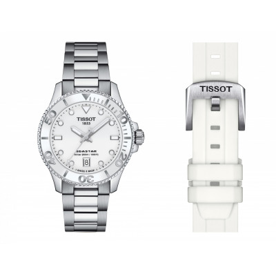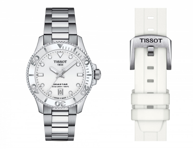 Lo puoi sentire. Sotto le onde, c'è silenzio. In acque cristalline, è possibile vedere i raggi del sole irrompere in superficie. Nella tua mente, solo calma. Al tuo polso, il Seastar 1000 Quartz, la porta di questo mondo sottomarino. Con 36 mm, il Tissot Seastar 1000 Quartz ha una naturale sicurezza. È chic e versatile, pronto ad attraversare la giungla urbana e abbastanza forte da immergersi nelle profondità del mare. Che tu scelga il quadrante nero, blu o bianco, viene fornito con cassa e bracciale in acciaio inossidabile, lunetta girevole unidirezionale con inserto in vetro minerale, corona a vite e resistenza all'acqua fino a 30 bar (300 m / 1000 piedi). E se lo desideri, puoi cambiare rapidamente il bracciale con un cinturino in silicone arancione, bianco, azzurro o nero. Cambia la tua prospettiva ed entra in un altro mondo.