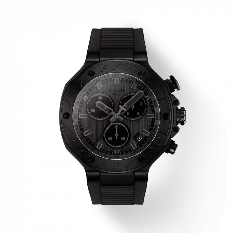 Grazie al suo nuovo design, il Tissot T-Race Chronograph presenta un quadrante più elegante, senza rinnegare le sue radici sportive. Tissot ha tratto ispirazione dalla sua partnership con le corse motociclistiche per creare un orologio che riflette il dinamismo delle motociclette e l'emozione dello sport. L'orologio è impermeabile fino a una pressione di 10 bar (100 m), dotato di un movimento cronografico al quarzo e lancette delle ore e dei minuti rivestite con SuperlumiNova. Questa versione del Tissot T-Race Chronograph presenta una cassa in acciaio inossidabile 316L. Il vetro zaffiro antigraffio e antiriflesso garantisce una maggiore robustezza.