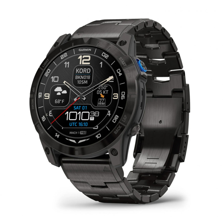 Be ready for takeoff, day or night. This premium smartwatch has a built-in flashlight, superbright AMOLED display and advanced tools for flying and fitness.