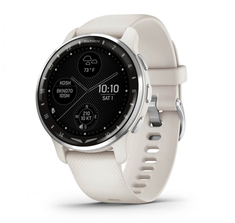 Orologio Aviator Smartwatch GPS concepito per il volo con cinturino bianco, della collezione Sport & Fitness di Garmin.