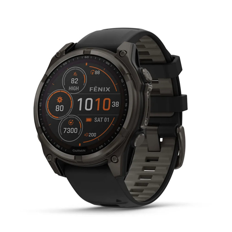 Smartwatch Garmin Solar Titanio, Carbon Gray DLC con cinturino in silicone Black/pebble grey, della collezione Outdoor linea fēnix® 8.