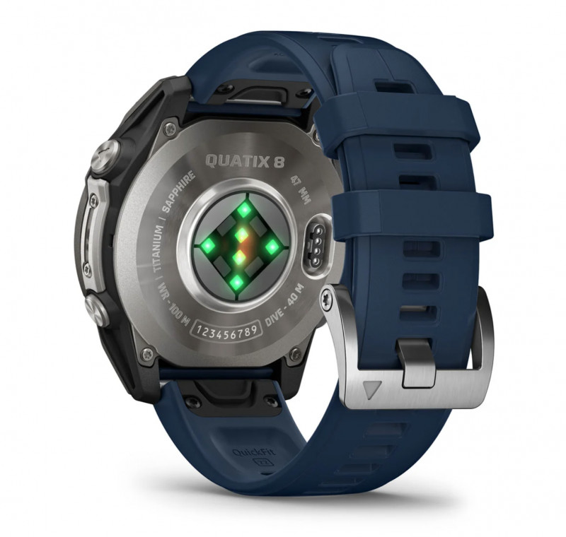 Il quatix 8 è dotato di un luminoso schermo AMOLED da 1,4″ e una torcia a LED, per avere direttamente sul polso tutte le funzioni utili in barca e anche a terra.
