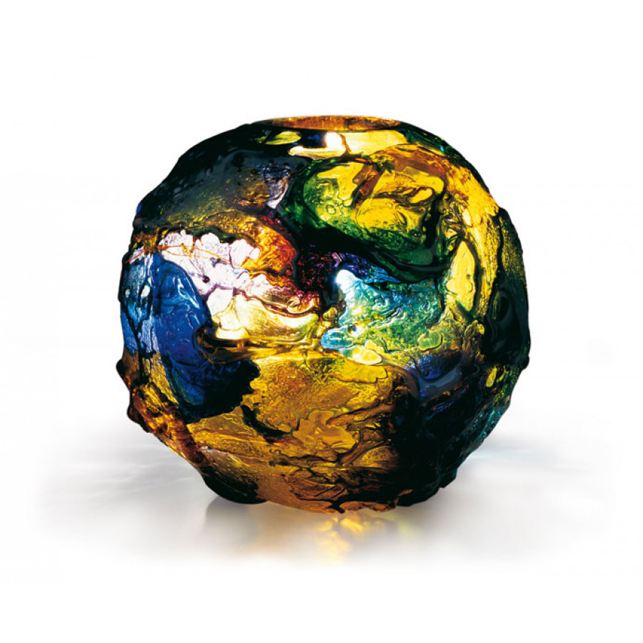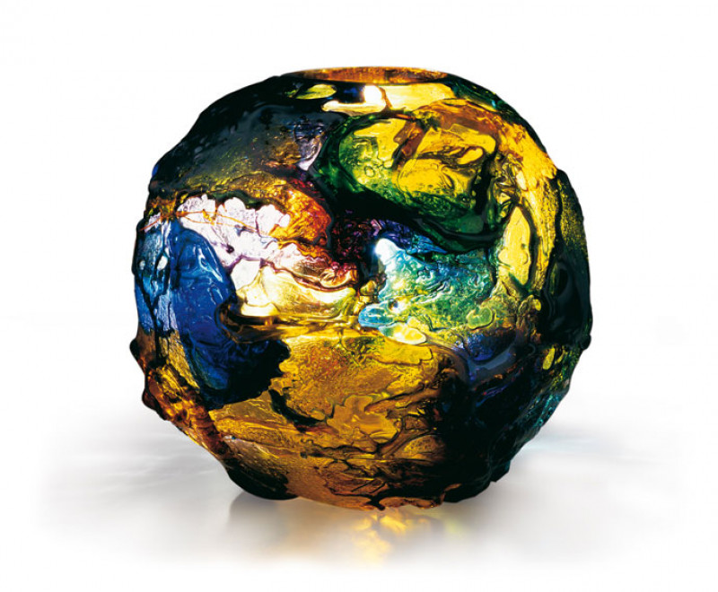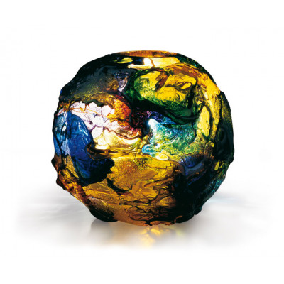 Vaso in vetro multicolore soffiato e lavorato a mano.
