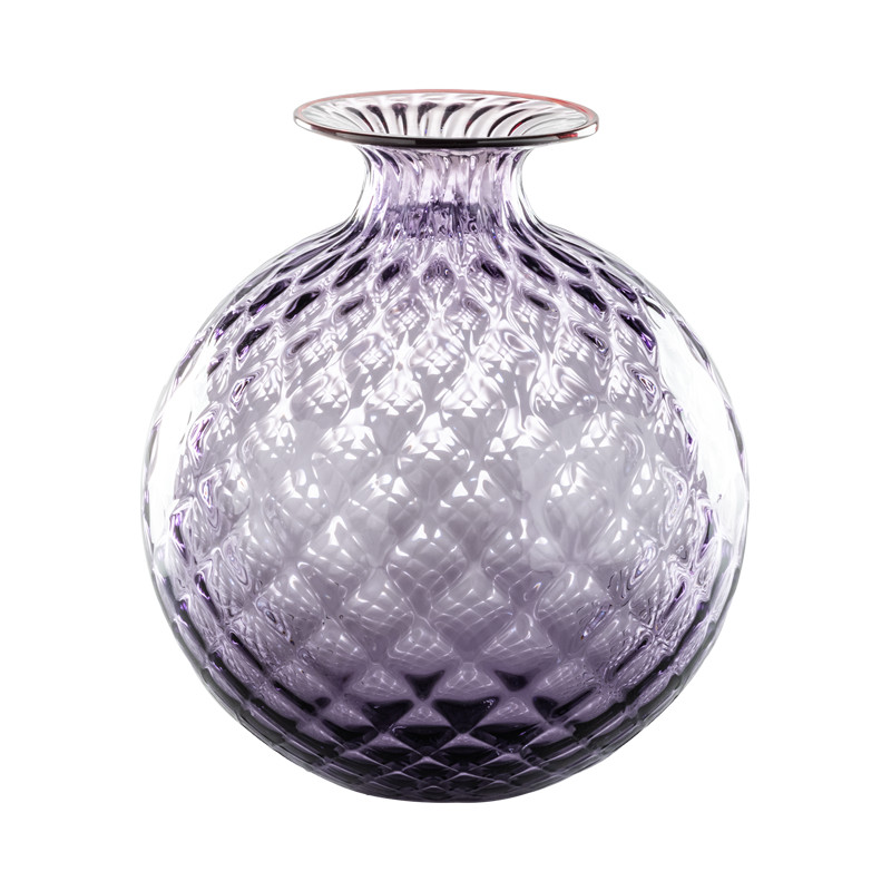 Vaso in vetro soffiato lavorato a mano con la tradizionale tecnica della lavorazione a Balloton con stampo in metallo, per un effetto di rilievo incrociato.