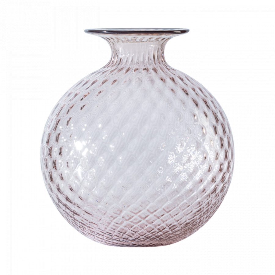 Vaso Venini Monofiori Balloton lavorato a mano color rosa cipria