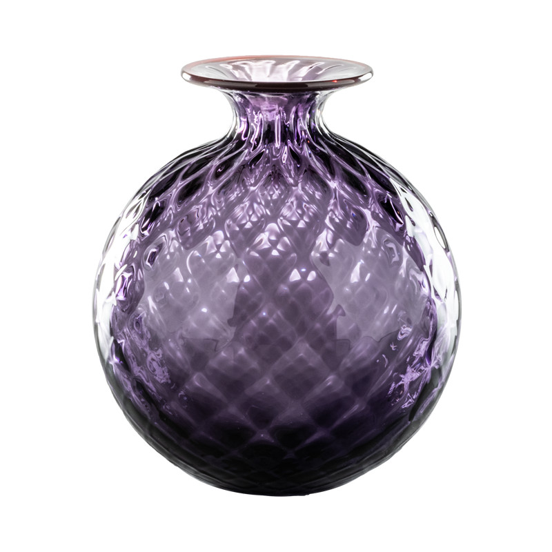 Vaso Venini in vetro soffiato lavorato a mano con la tradizionale tecnica della lavorazione a Balloton con stampo in metallo, per un effetto di rilievo incrociato.