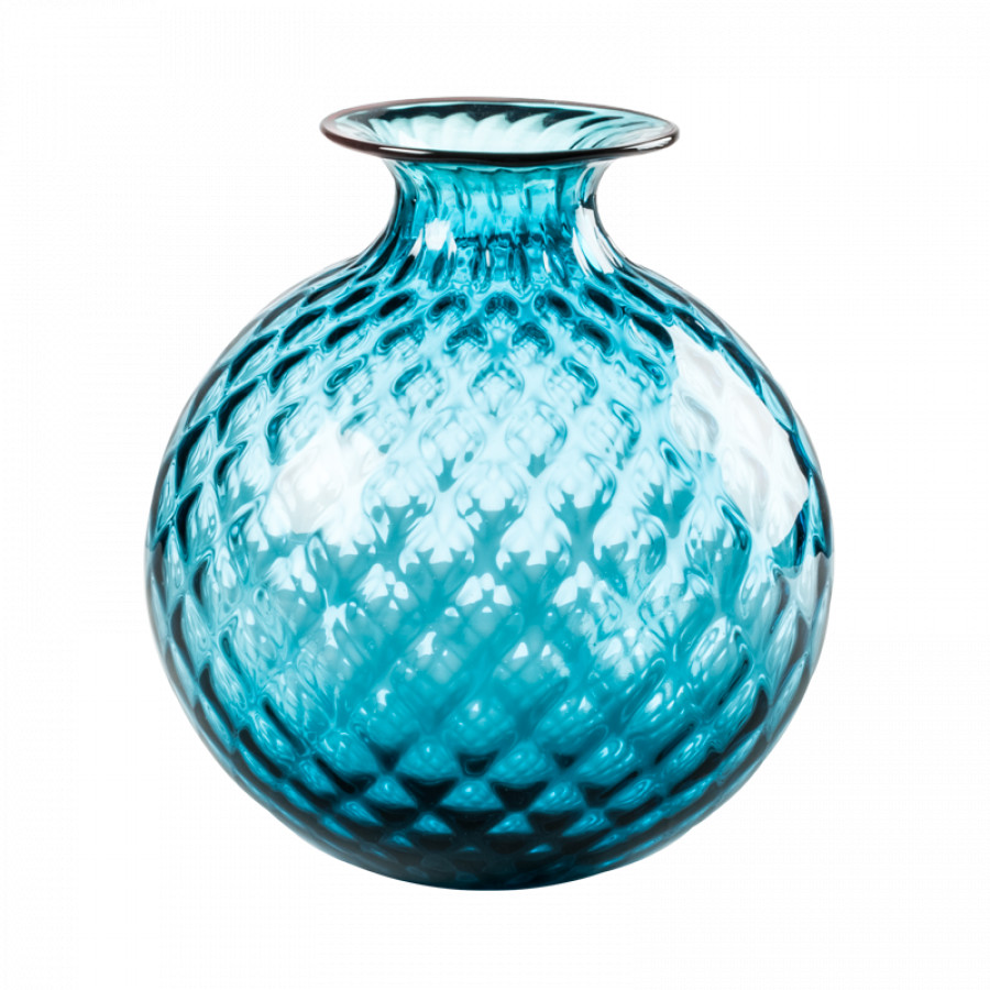 Vaso Venini in vetro soffiato lavorato a mano con la tradizionale tecnica della lavorazione a Balloton con stampo in metallo, per un effetto di rilievo incrociato.