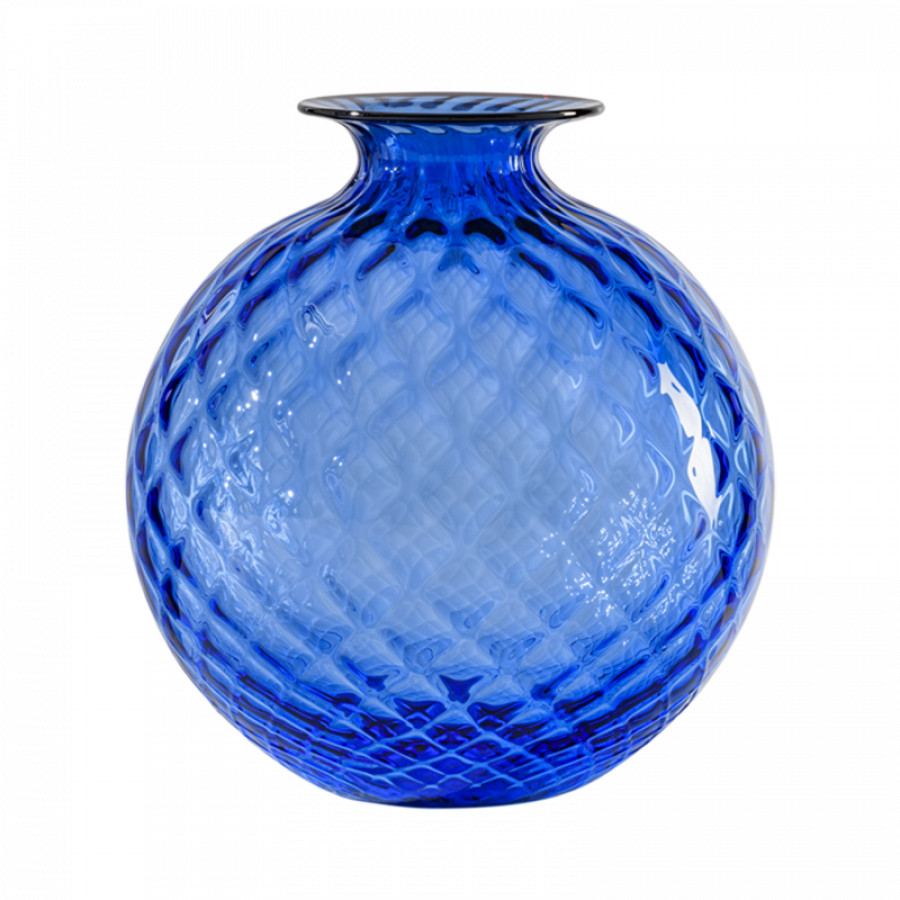 Vaso Venini in vetro soffiato lavorato a mano con la tradizionale tecnica della lavorazione a Balloton con stampo in metallo, per un effetto di rilievo incrociato.