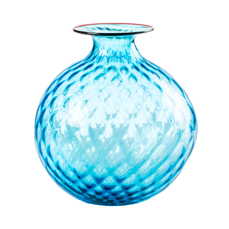 Vaso Venini Monofiori Balloton lavorato a mano color Acquamare / Rosso.