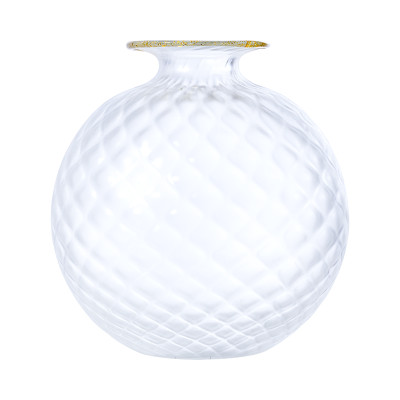 Vaso Venini in vetro soffiato lavorato a mano con la tradizionale tecnica della lavorazione a Balloton con stampo in metallo, per un effetto di rilievo incrociato.