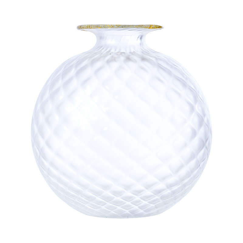 Vaso Venini Monofiori Balloton lavorato a mano color Cristallo Foglia Oro Sabbiato.