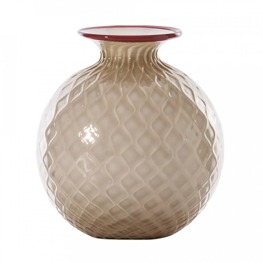 Vaso Venini Monofiori Balloton 100.16 lavorato a mano color Moka.
