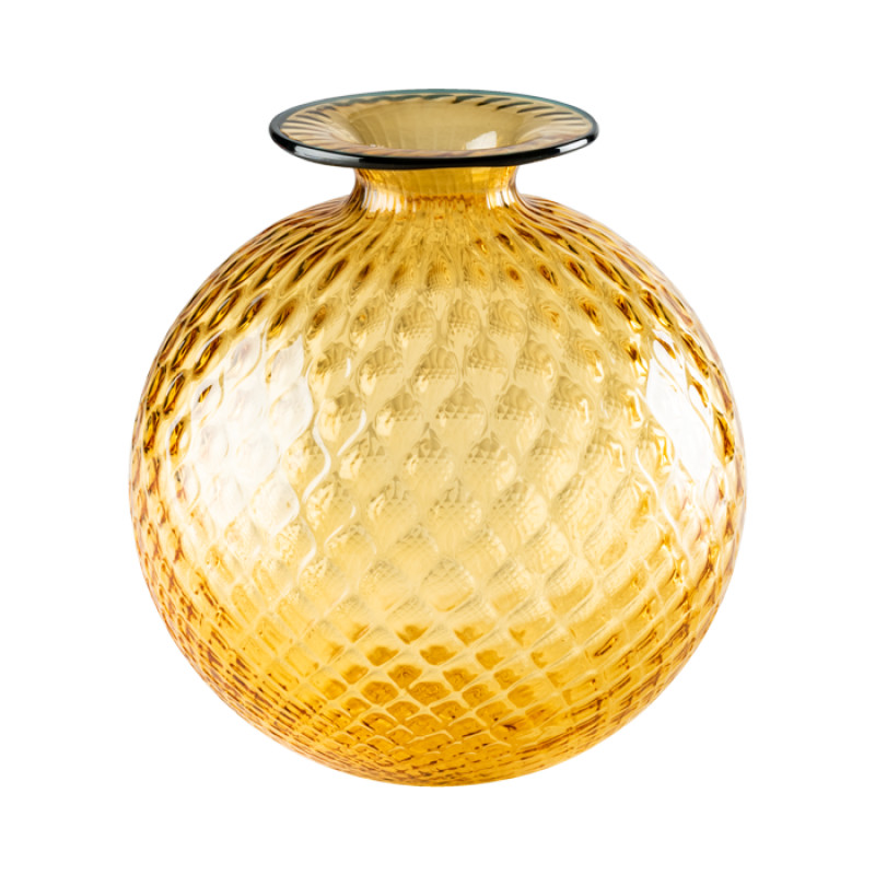 Vaso Venini Monofiori Balloton 100.18 lavorato a mano color Ambra / Orizzonte.