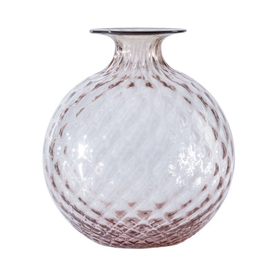 Vaso Venini Monofiori Balloton 100.18 lavorato a mano color Rosa Cipria / Rosso Sangue di bue.