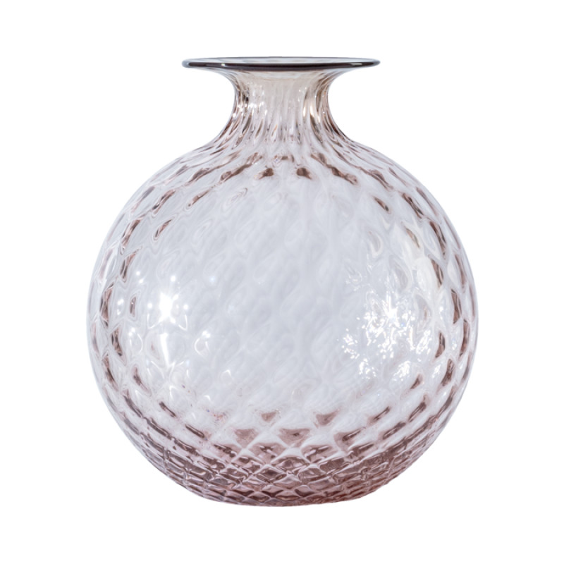 Vaso Venini in vetro soffiato lavorato a mano con la tradizionale tecnica della lavorazione a Balloton con stampo in metallo, per un effetto di rilievo incrociato.