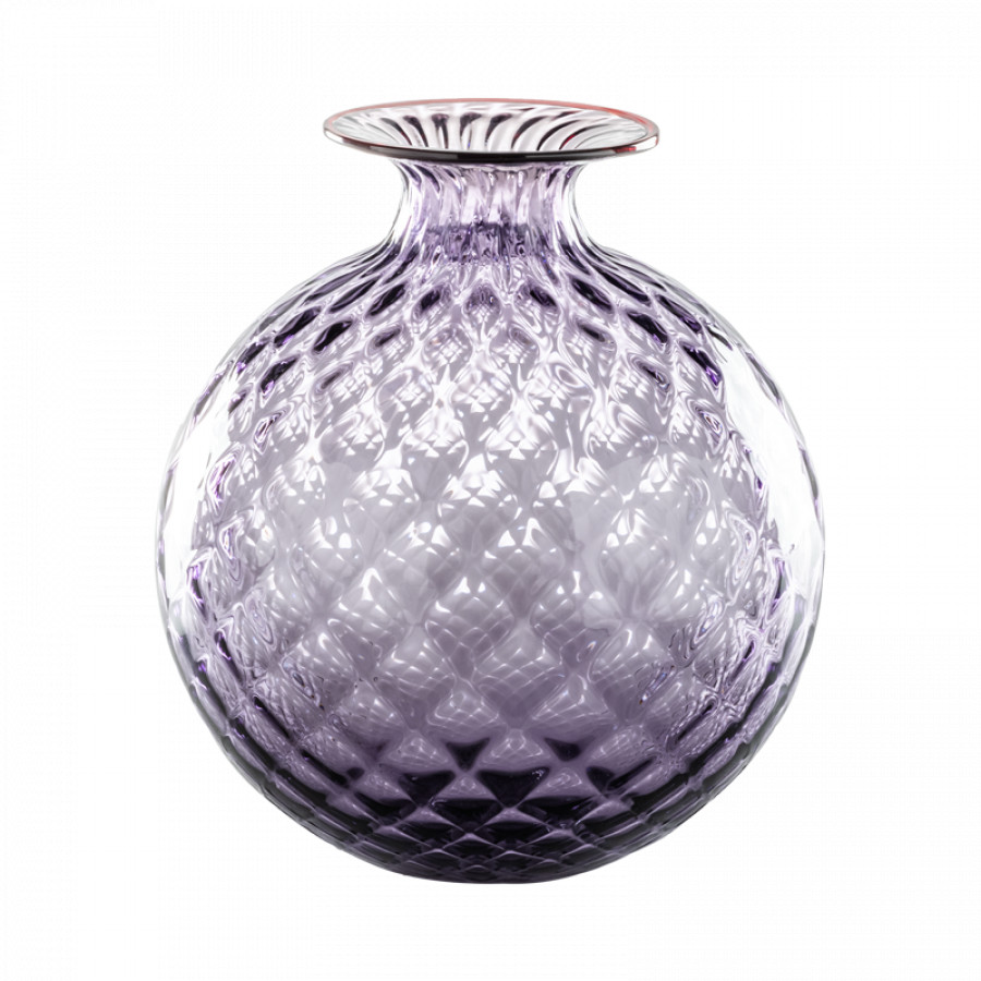 Vaso Venini in vetro soffiato lavorato a mano con la tradizionale tecnica della lavorazione a Balloton con stampo in metallo, per un effetto di rilievo incrociato.