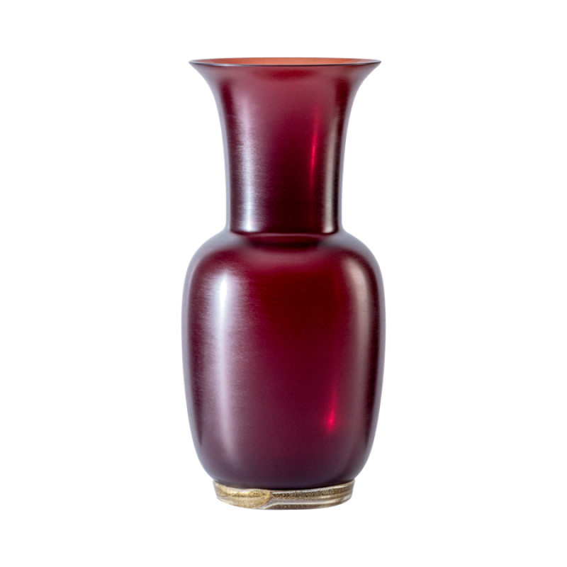Vaso Venini Opalino 706.22 lavorato a mano color Cristallo / Rosso Sangue di bue