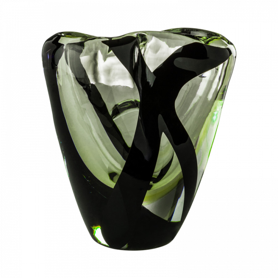 Vaso Venini Black Belt 699.10 lavorato a mano Cristallo / Nero / Verde Erba