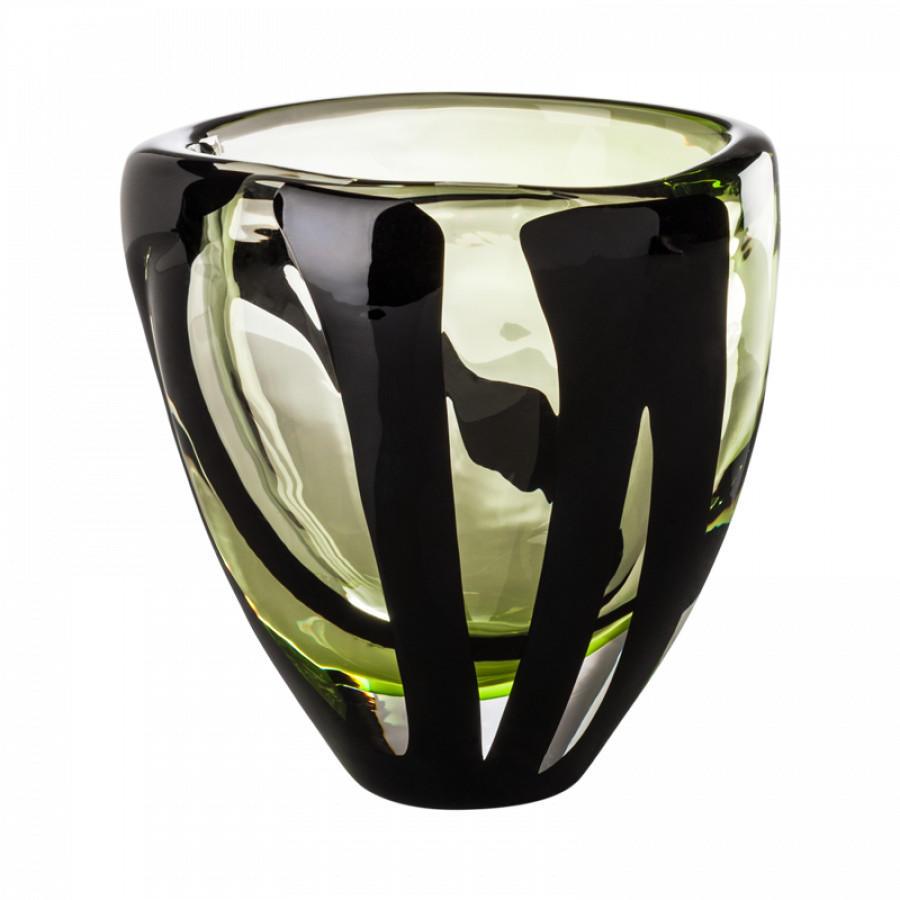 Vaso Venini Black Belt 699.21 lavorato a mano Cristallo / Nero / Verde Erba