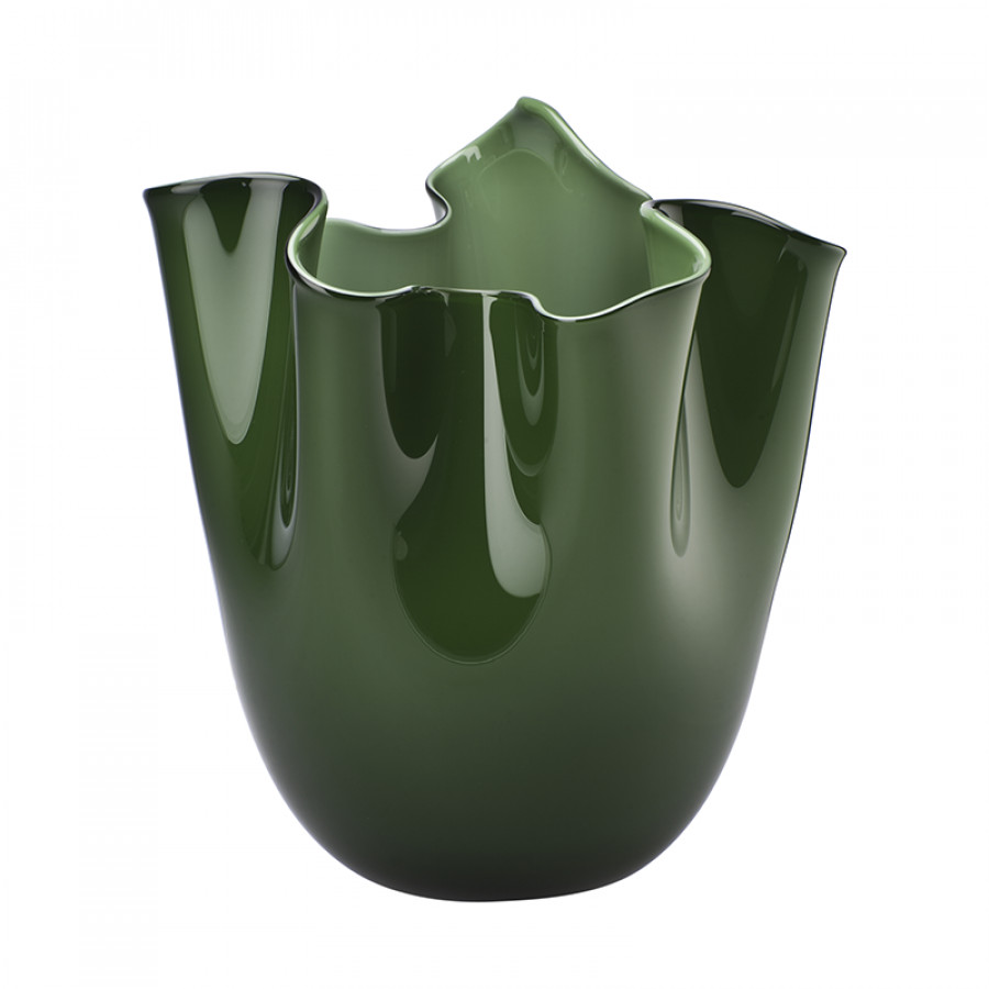 Vaso Venini Fazzoletto 700.02 soffiato opalino, mano Volante. Color Verde Mela.