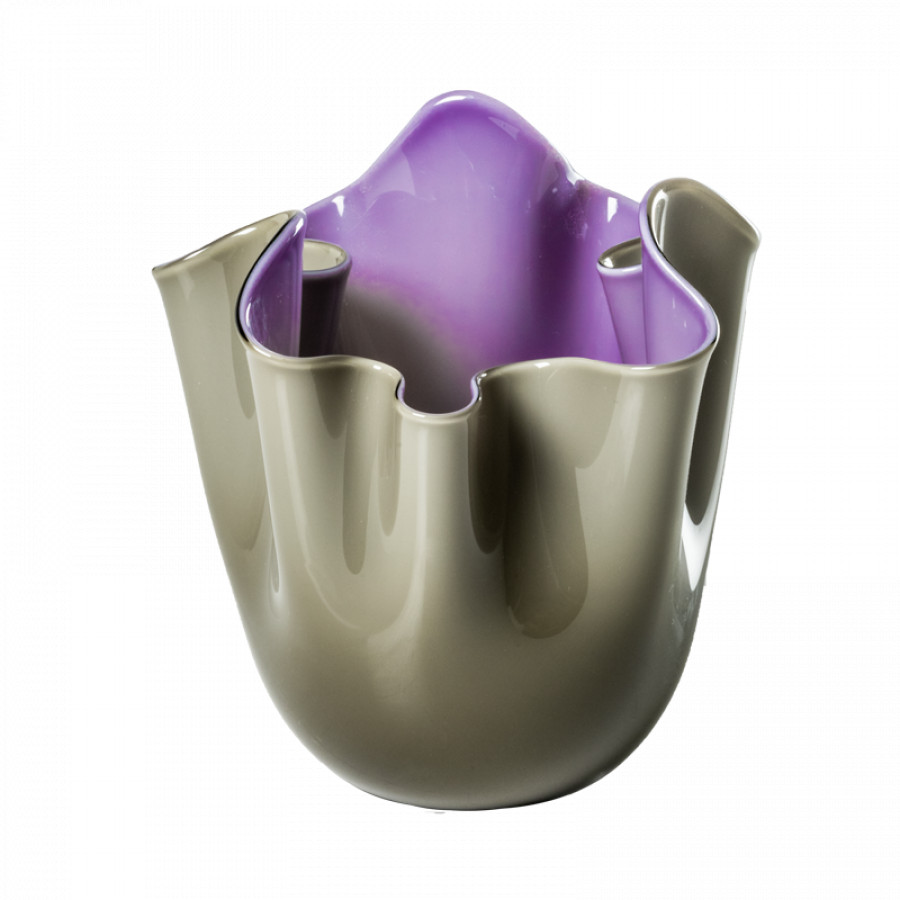 Vaso Venini Fazzoletto soffiato opalino, mano Volante. Colore Indaco / Talpa.