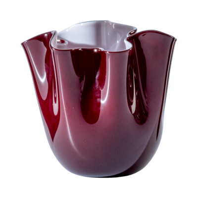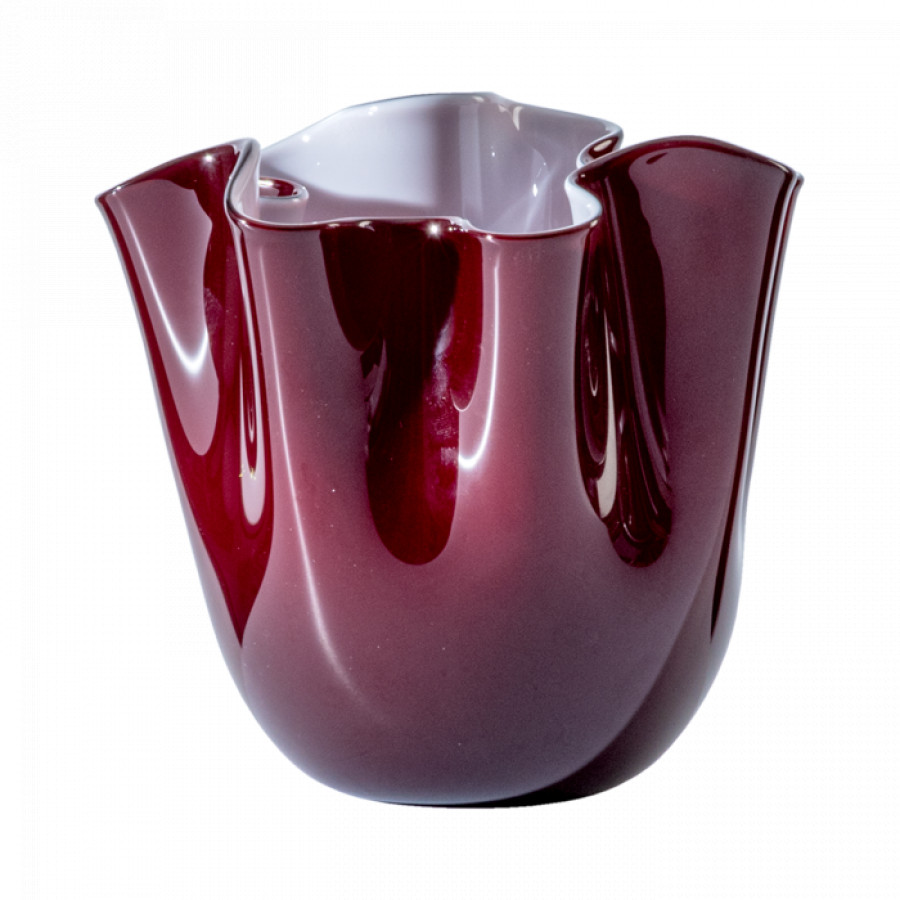 Vaso Venini Fazzoletto soffiato opalino, mano Volante. Colore Rosa Cipria / Rosso Sangue di bue.