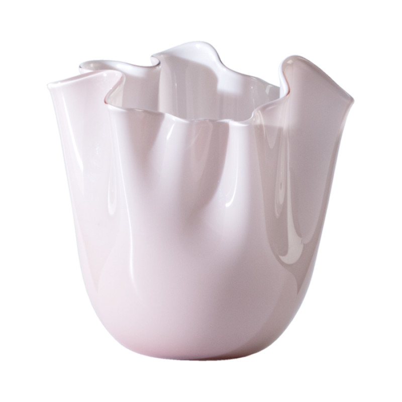 Vaso Venini Fazzoletto soffiato opalino, mano Volante. Colore Rosa Cipria.