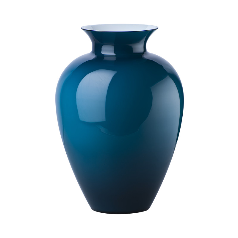 Vetro opalino soffiato e lavorato a mano, ottenuto dalla sovrapposizione del lattimo con altri vetri.