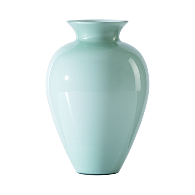 Vetro opalino soffiato e lavorato a mano, ottenuto dalla sovrapposizione del lattimo con altri vetri.
