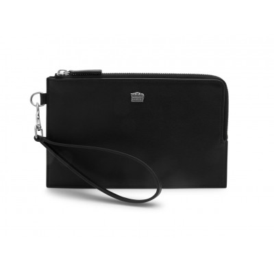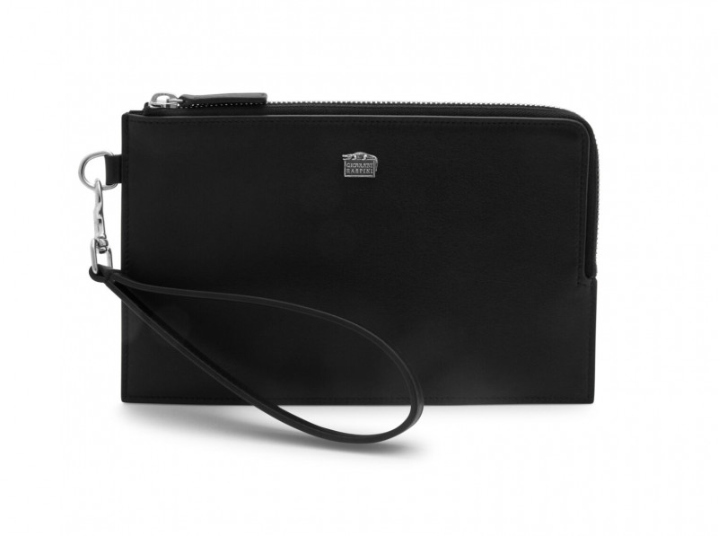 Realizzato in pregiata pelle di vitello pieno fiore liscia nera, questa pouch è il modello più grande della collezione, versatile e ideale per chi desidera spazio senza rinunciare allo stile. La pouch, dotata di un comodo laccio da polso staccabile in pelle e metallo, si chiude con una robusta cerniera, la quale garantisce che tutti gli oggetti contenuti siano al sicuro. All'interno è presente un unico grande scomparto, munito di 3 tasche aggiuntive per carte di credito. Questo prodotto rappresenta la massima eccellenza artigianale che da sempre contraddistingue il brand Giovanni Raspini, ed è impreziosito da un caratteristico elemento in Argento 925, realizzato in fusione a cera persa e raffigurante il logo del brand in miniatura, sovrastato dall'iconico coccodrillo. Lavorato interamente a mano in Toscana.