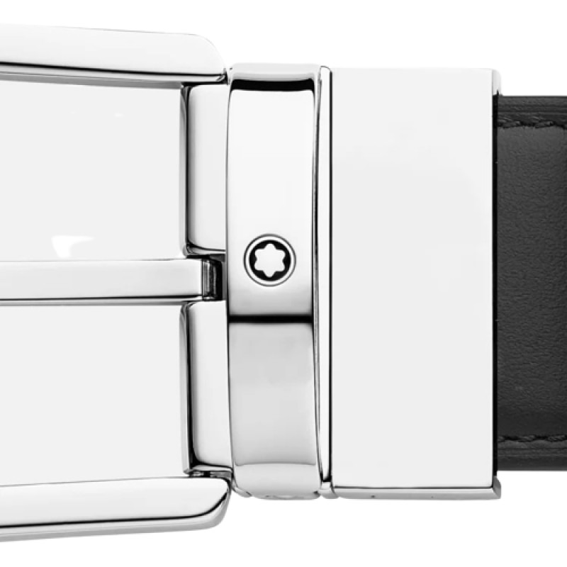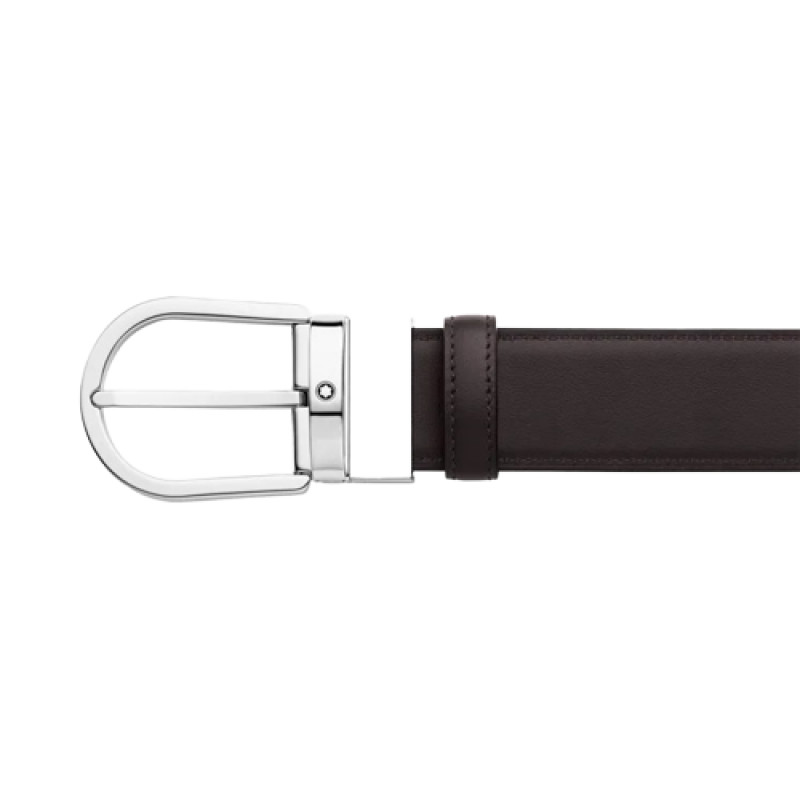Cintura da uomo Montblanc in pelle nera/cuoio 35 mm con fibbia a ferro di cavallo