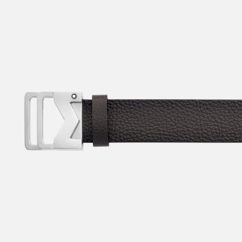 Cintura da uomo Montblanc in pelle marrone scuro da 35 mm. Fibbia Montblanc M