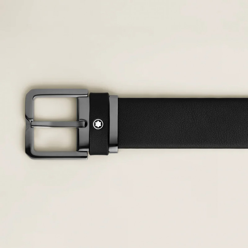Cintura da uomo Montblanc 35 mm in pelle nera con fibbia a ferro di cavallo